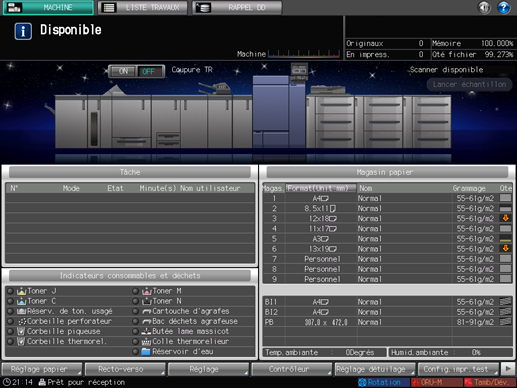 Ce Guide de l'utilisateur décrit l'utilisation de l'écran tactile de la machine équipée, par exemple de l'Unité d'alimentation papier PF-708.