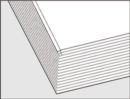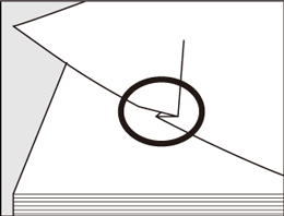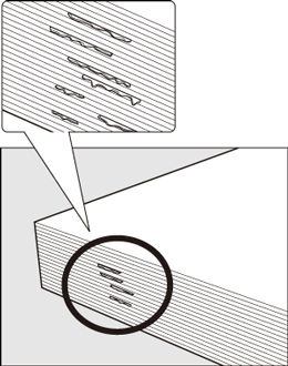 Vérifiez que la pile de papier ne présente pas de plis ou dommages, et enlever comme sur l'illustration ci-après toute feuille qui serait détériorée.
