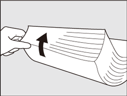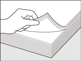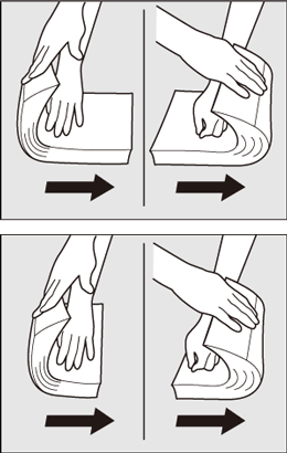 Ventilez la pile aux deux extrémités avant et arrière dans le sens d'alimentation, en la tenant comme sur l'illustration.