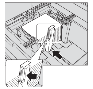 Ecartez complètement la plaque-guide latérale et la plaque-guide arrière en appuyant sur le levier de déverrouillage de la plaque-guide latérale et de la plaque-guide arrière.