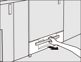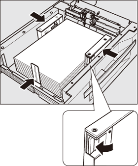 En poussant le levier de déverrouillage de la plaque-guide latérale avant, déplacez cette plaque pour aligner les guides sur les couvertures.