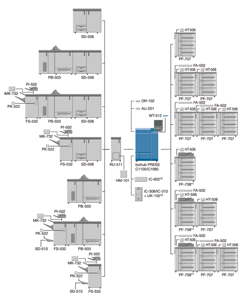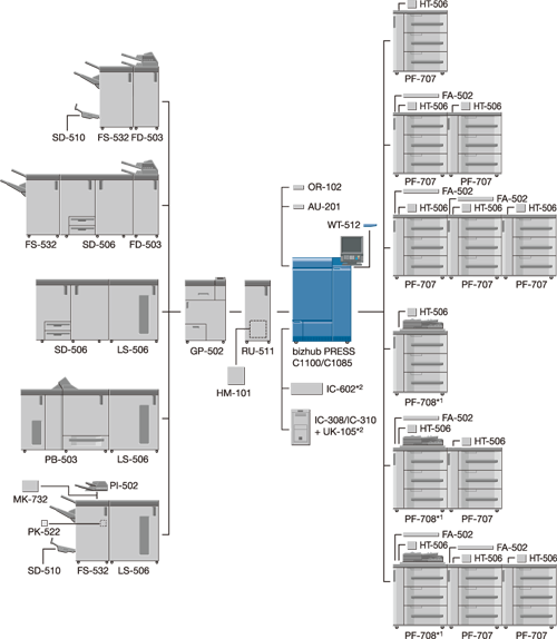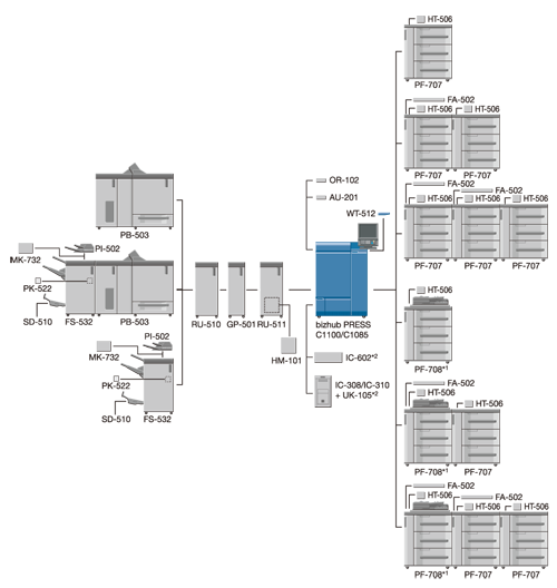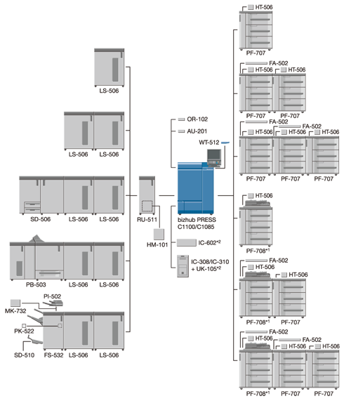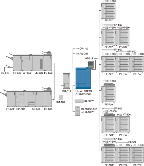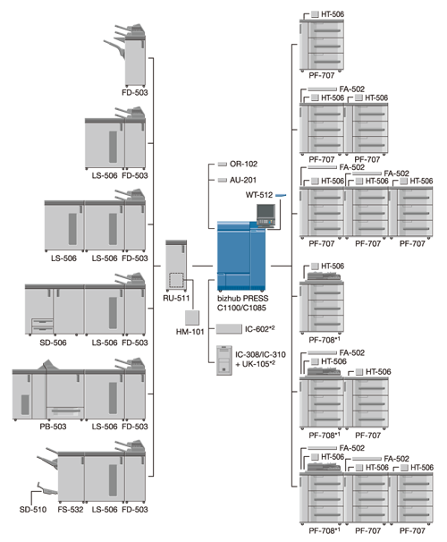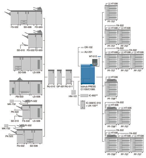 *1 : l'unité d'alimentation papier PF-708 est dotée du chargeur automatique recto-verso (ADF) et du scanner.