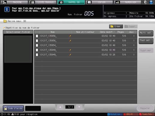 L'écran [RAPPEL DD] permet de traiter les tâches enregistrées sur le disque dur.