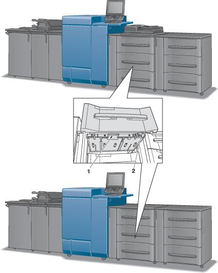 Se tourne pour acheminer le papier coincé vers la section de transport horizontal.