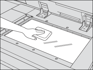 Relevez le chargeur ADF, puis nettoyez la vitre d'exposition avec un chiffon doux propre. Nettoyez avec un chiffon doux légèrement imbibé d'eau en cas de salissures tenaces.