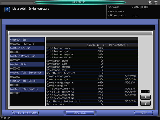 Appuyez sur [Impression] sur l'écran [Liste détaillée des compteurs].