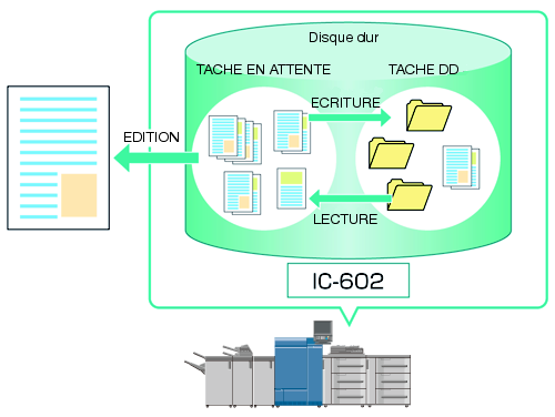 Vous pouvez mettre en attente/enregistrer temporairement des données d'impression et de copie sur le disque dur sous forme de "tâche".