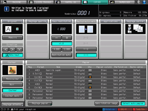 Spécifiez le magasin sur l'écran tactile de l'imprimante, définissez l'original et appuyez sur la touche Départ du panneau de contrôle.