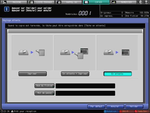 Appuyez sur [En attente] (ou sur [En attente + Imprimer]) et sur [Nom du fichier].