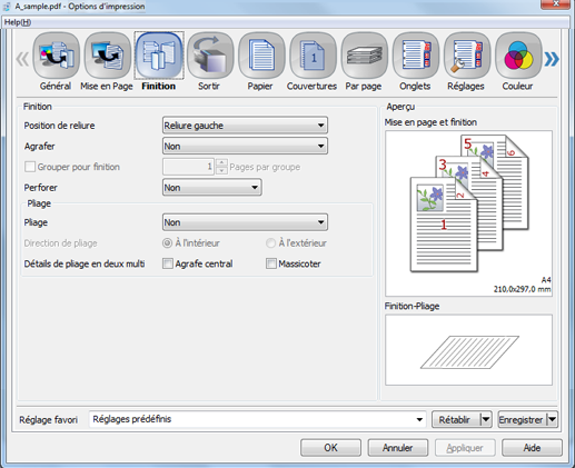 [Finition] | Sens de reliure, agrafage, finition divisée, perforation/pliage |