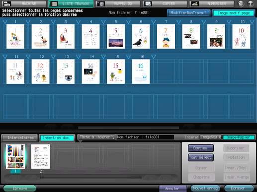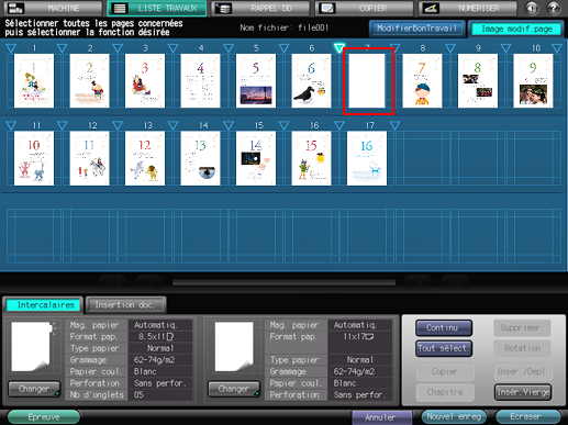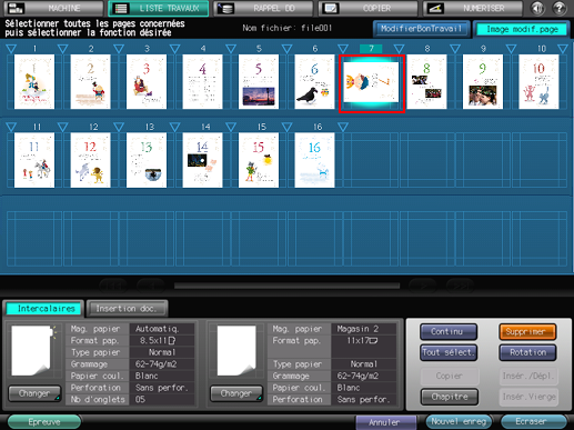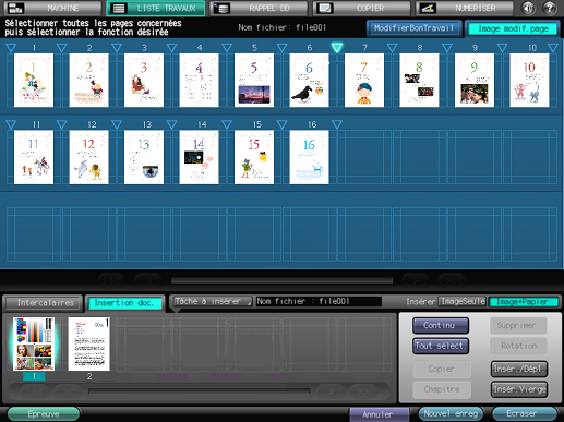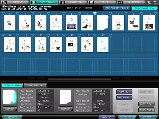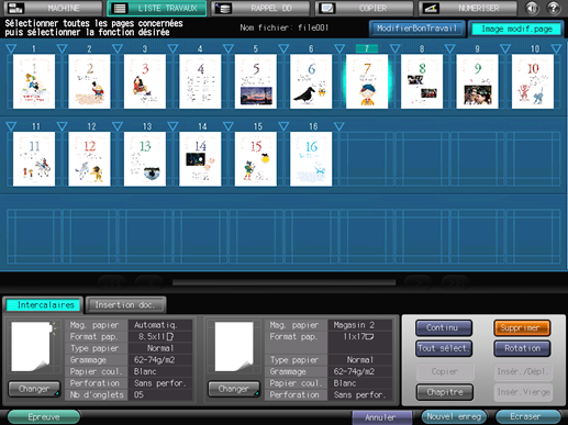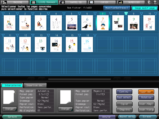 Apportez des modifications aux pages (par ex. copie, déplacement, suppression / configuration de chapitres / insertion de papier à onglet).