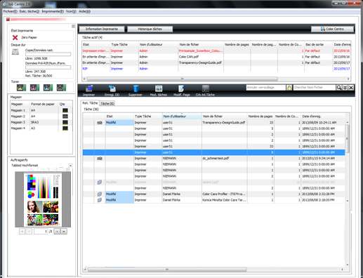 Dans Job Centro, vous ne pouvez modifier que les tâches d'impression ([Type Tâche] = [Imprimer]). Pour modifier des tâches de copie ([Type Tâche] = [Copier]), utilisez l'écran tactile de l'imprimante.