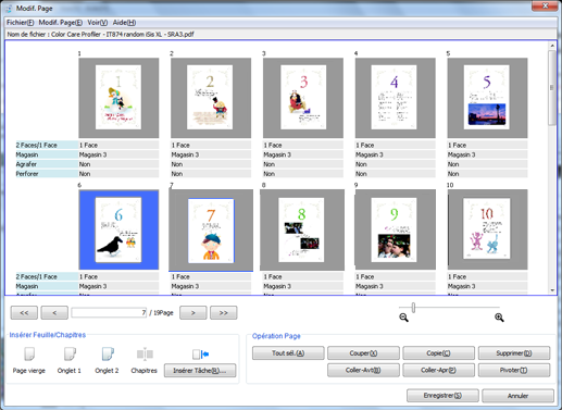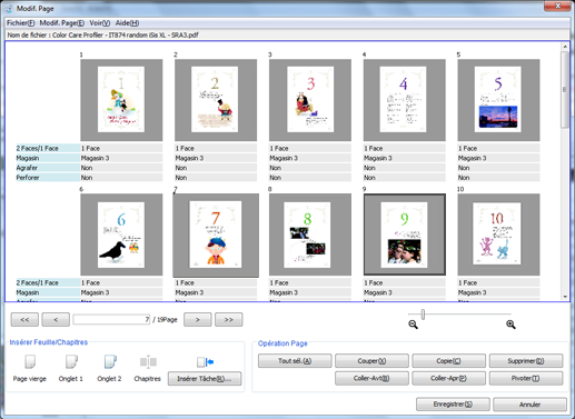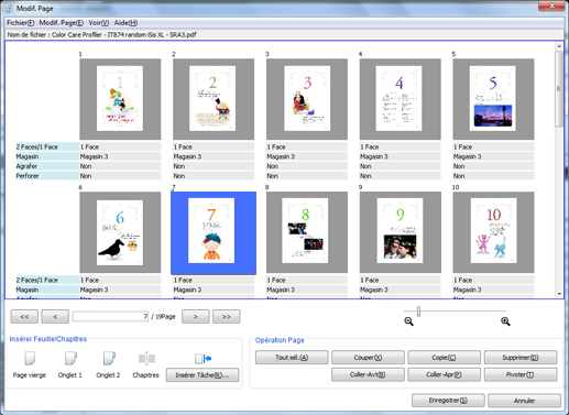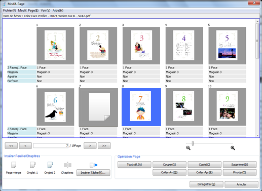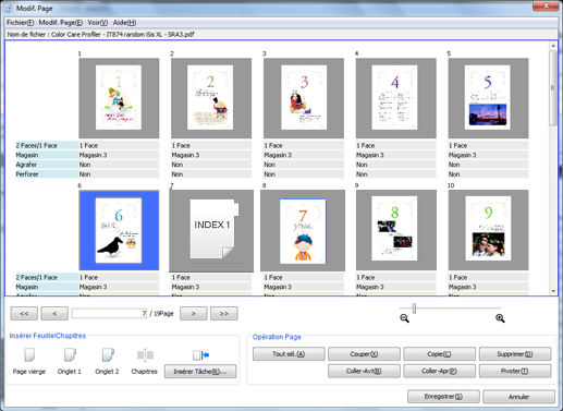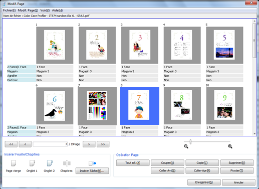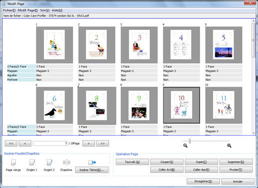 Apportez des modifications aux pages (par ex. copie, déplacement, suppression / configuration de chapitres / insertion de papier à onglet).