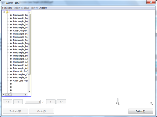 Retournez sur l'écran Modif. Page, sélectionnez la vignette de la page pour insérer les pages d'une autre tâche et cliquez sur [Coller-Avt] ou sur [Coller-Apr].