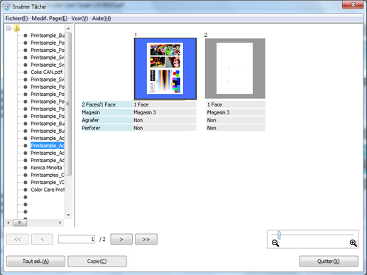 Vous avez la possibilité de sélectionner et d'insérer des pages appartenant à d'autres tâches.