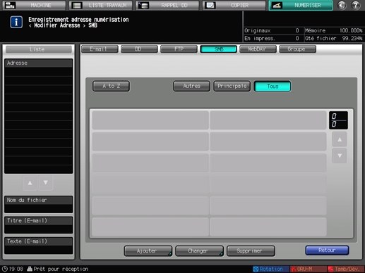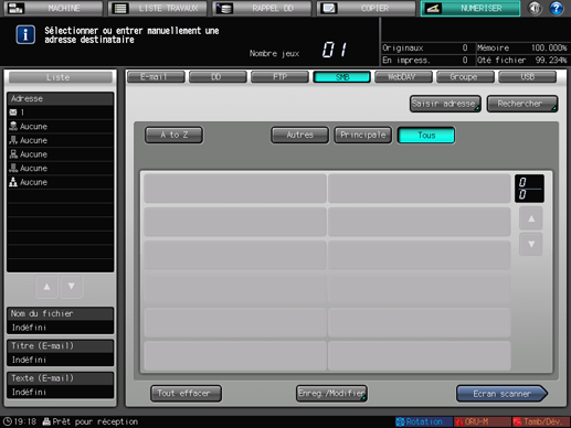 Après avoir appuyé sur [NUMERISER], appuyez sur [SMB] pour afficher cet écran.