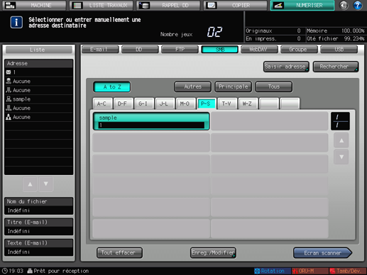 Sélectionnez l'adresse SMB que vous avez enregistrée et appuyez sur [Ecran scanner].