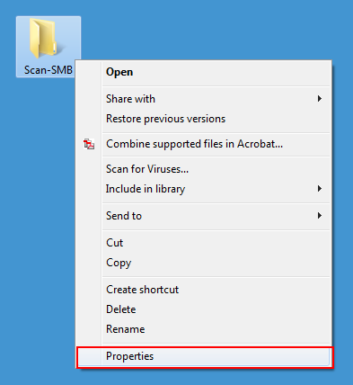 Exemple : un dossier nommé "Scan-SMB" est créé sur le bureau de Windows 7.