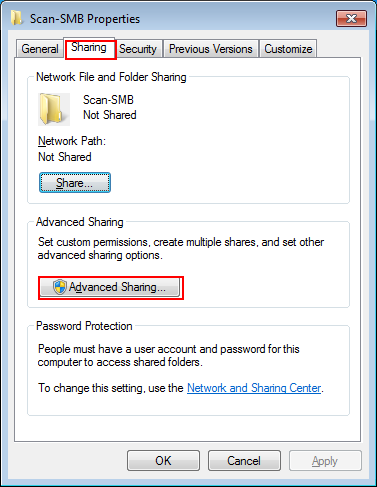 Créez un dossier partagé sur l'ordinateur Windows. Vous pouvez recevoir les données numérisées envoyées par la machine vers le dossier partagé et partagez-les avec un ordinateur client.