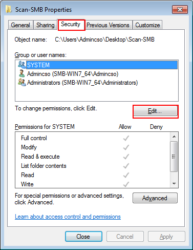 Cliquez sur l'onglet [Sécurité] et sur [Modifier].