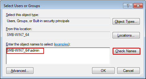 [Entrer les noms des objets à sélectionner] | "SMB-WIN7_64\admin"