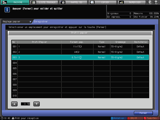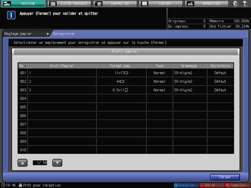 Vérifiez que le profil papier est bien enregistré et appuyez sur [Fermer].
