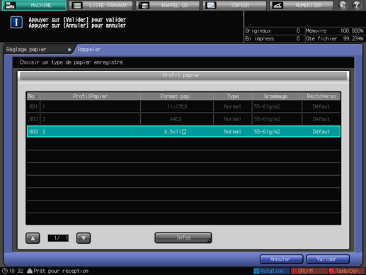 Appuyez sur le nom de profil papier à appeler et appuyez sur [Valider].