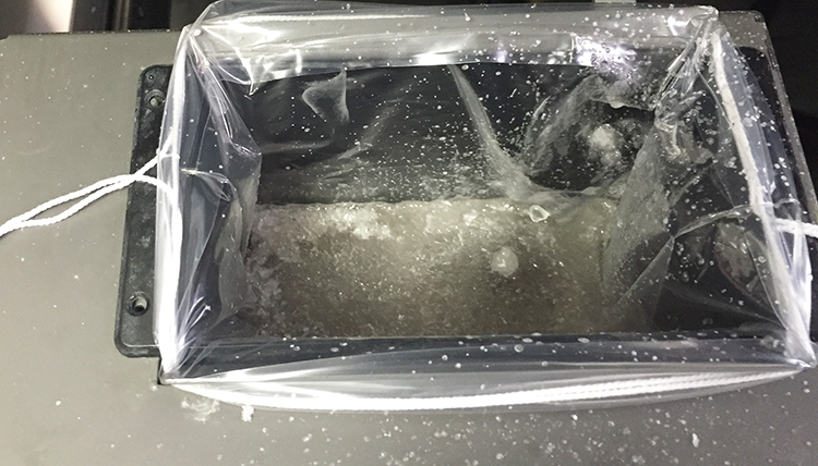 Sacs à déchets : sacs plastiques conçus pour récupérer les déchets de matériaux provenant du processus de fabrication. Le sac à déchets se trouve dans le MDM, derrière le matériau support. Portez toujours des gants en nitrile, une blouse de laboratoire et des lunettes lorsque vous manipulez le matériau de pièces ou des déchets non polymérisés.