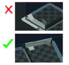 Dans 3DSPRINT, positionnez la pièce presque à angle droit par rapport à la surface horizontale avant de l'envoyer à l'imprimante. |